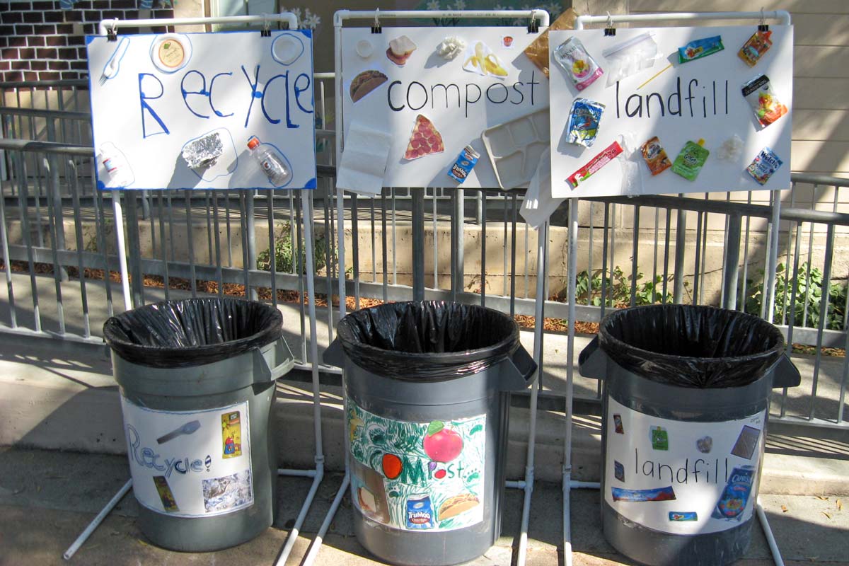 - Signage for labeling recycling, compost, and landfill bins on campus.